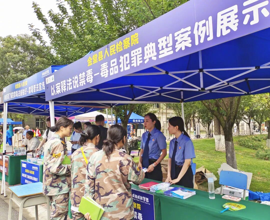 2023年6月21日,金堂县检察院在某职业学院举行以案说法禁毒宣传活动。